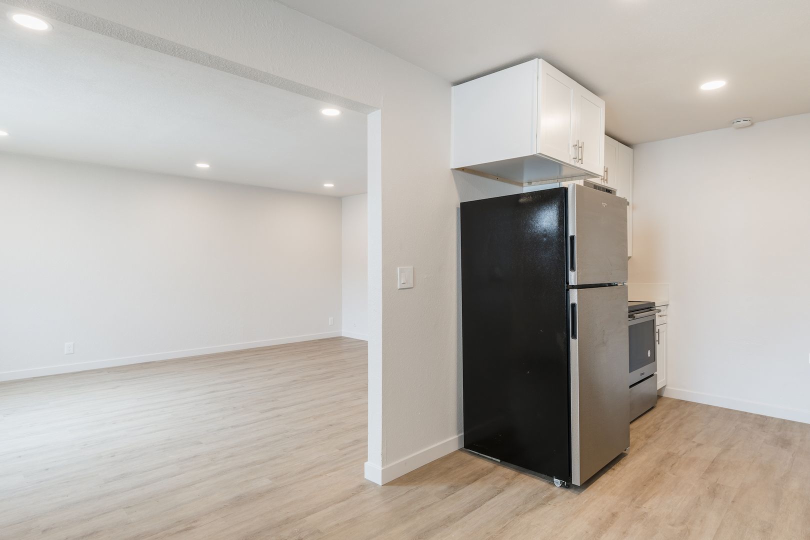 Discover this beautifully updated 2-bedroom, 1-bathroom second-floor unit that perfectly blends comfort and modern style. The bright, open living area is enhanced by large windows that bring in abundant natural light, complemented by fresh finishes and contemporary flooring.
